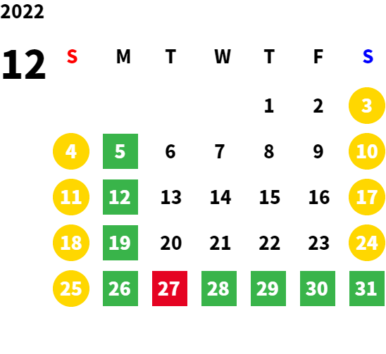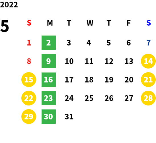 営業日カレンダー