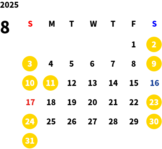 365日休まず営業いたします。施設運営に順じて営業いたしますので、営業時間短縮や休館をする場合があります。